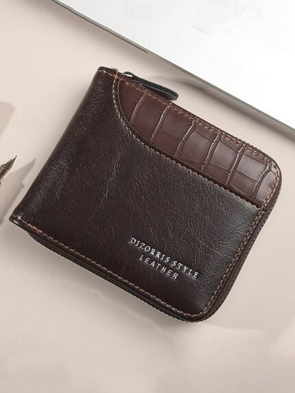Men’s Faux Leather Zipper Wallet with Multiple Card Slots