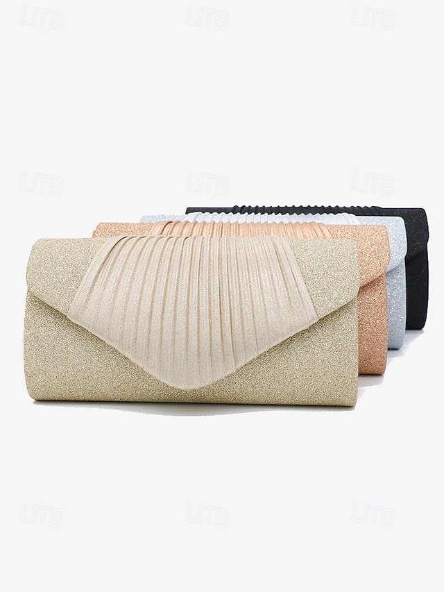 Be the first to review “Champagne Glitter Evening Clutch Bag with Pleated Design –” Cancel reply