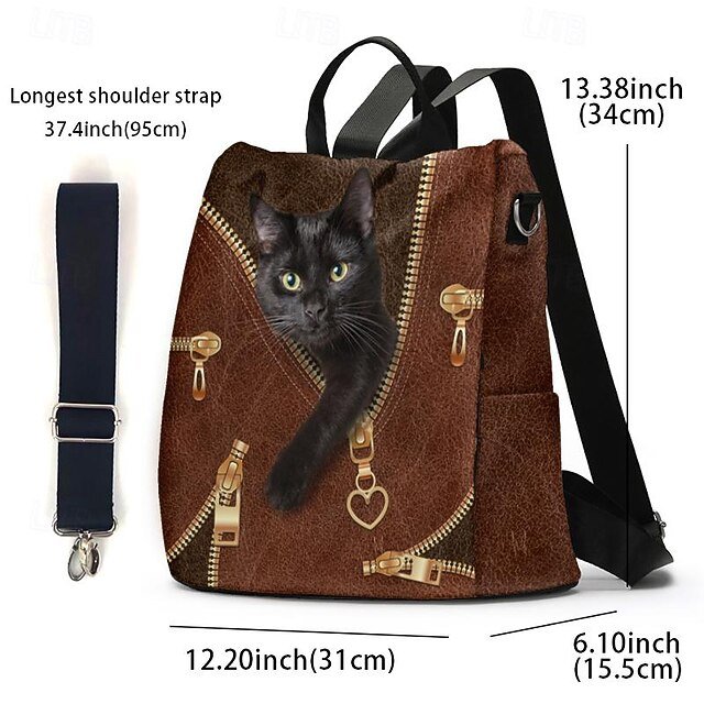 Gender: Women’s, Type: School Bag Bookbag, Material: Polyester, Embellishment: Zipper, Print, Pattern: Cat, Occasion: School, Daily, Outdoor, Width (cm): 31, Height (cm): 34, Function: Waterproof, Large Capacity, Multi Carry, Category: Backpack,