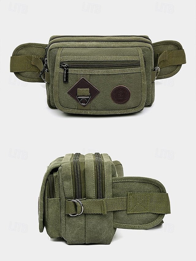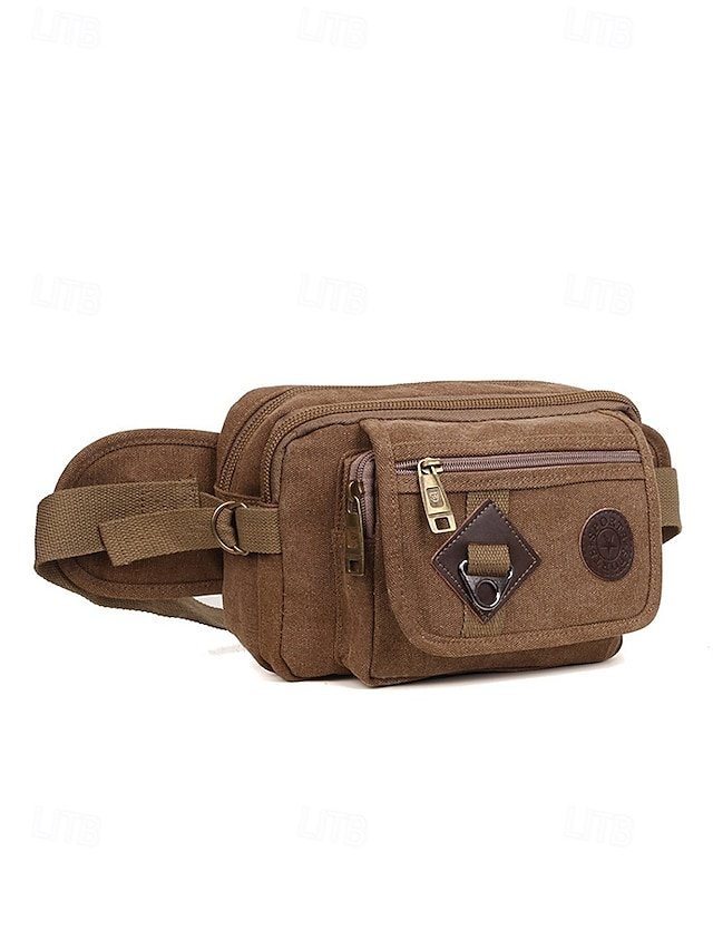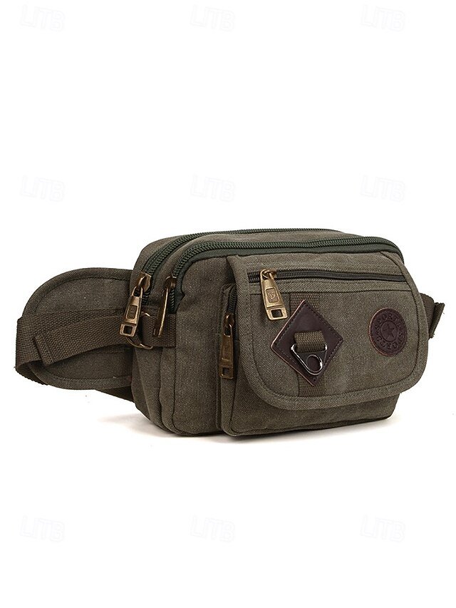 Gender: Men’s, Type: Shoulder Bags, Fanny Pack, Material: Canvas, Embellishment: Zipper, Multiple pockets, Pattern: Solid Color, Occasion: Holiday, Daily, Outdoor, Width (cm): 7, Height (cm): 14, Length (cm): 23, Function: Large Capacity, Multi Carry, Category: Crossbody Bag,
