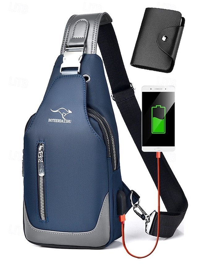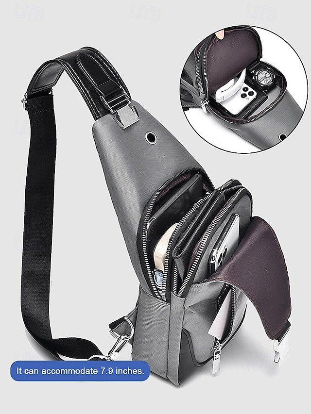 Gender: Men’s, Type: Chest Bag, Material: Oxford Cloth, Embellishment: Zipper, Multiple pockets, Pattern: Color Block, Solid Color, Detachable strap: Non-Detachable, Adjustable strap: Adjustable, Occasion: Daily, Casual, Outdoor, Travel, Father’s Day, Width (cm): 15, Height (cm): 30, Length (cm): 6, Function: Lightweight, USB Port, Waterproof, Category: Crossbody Bag, Shoulder Bag,