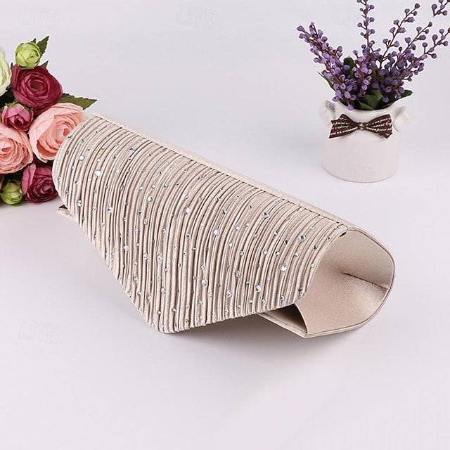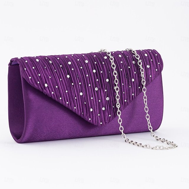 Gender: Women’s, Type: Evening Bag, Material: Alloy, Polyester, Embellishment: Rhinestone, Chain, Pattern: Solid Color, Occasion: Holiday, Party, Width (cm): 5.5, Height (cm): 11.5, Length (cm): 22, Category: Clutch, Evening Bag,