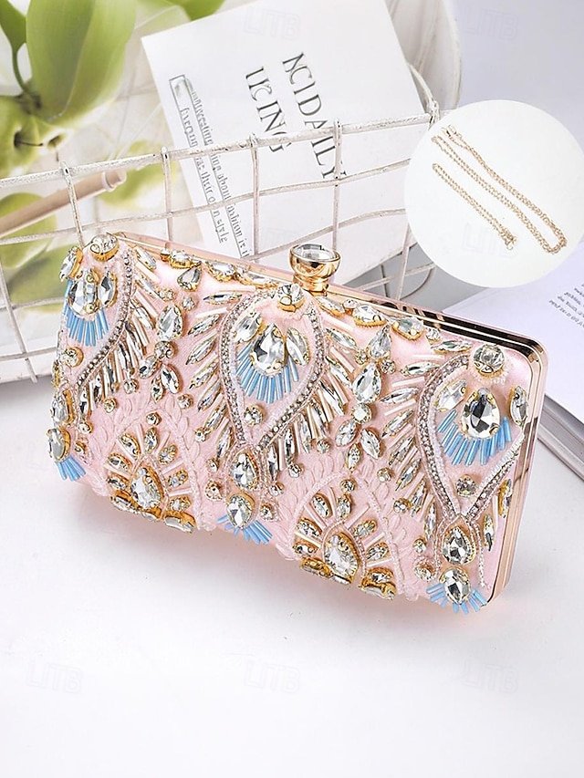 Gender: Women’s, Type: Evening Bag, Wristlet, Shoulder Bags, Material: Silk, Embellishment: Rhinestone, Beading, Sequin, Chain, Pattern: Solid Color, Detachable strap: Detachable, Adjustable strap: Non-Adjustable, Occasion: Party, Wedding Party, Width (cm): 5, Height (cm): 10, Length (cm): 17.5, Function: Multi Carry, Category: Clutch,