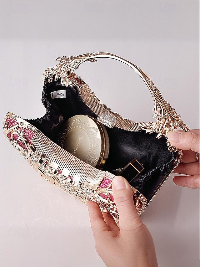 5PCS Elegant Crystal Evening Clutch with Gold Ring Handle –