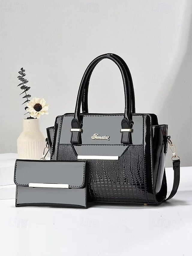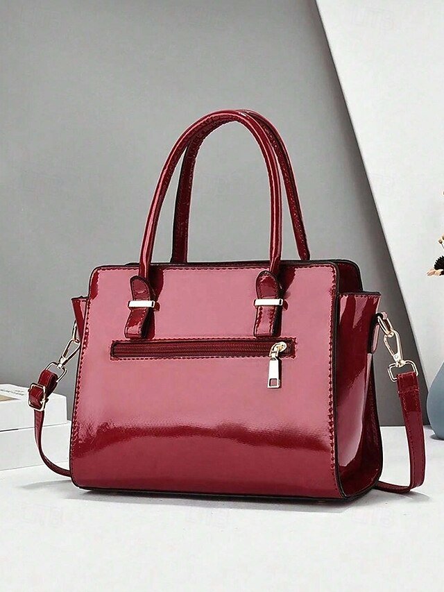 Women’s Patent Faux Leather Handbag Set – Glossy