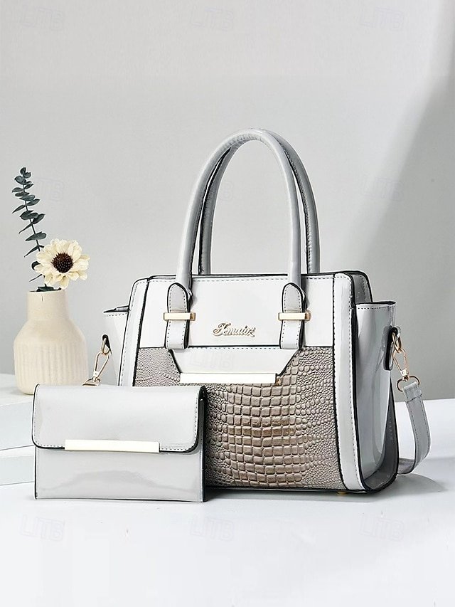 Gender: Women’s, Type: Crossbody Bag, Shoulder Bags, Material: Patent Leather, PU Leather, Embellishment: Zipper, Pattern: Crocodile, Solid Color, Detachable strap: Detachable, Adjustable strap: Adjustable, Occasion: Mother’s Day, Office, Casual Daily, Casual, Width (cm): 12, Height (cm): 22, Length (cm): 27, Function: Waterproof, Multi Carry, Category: Bag Set,