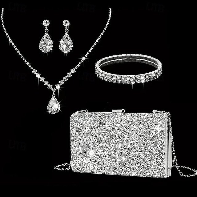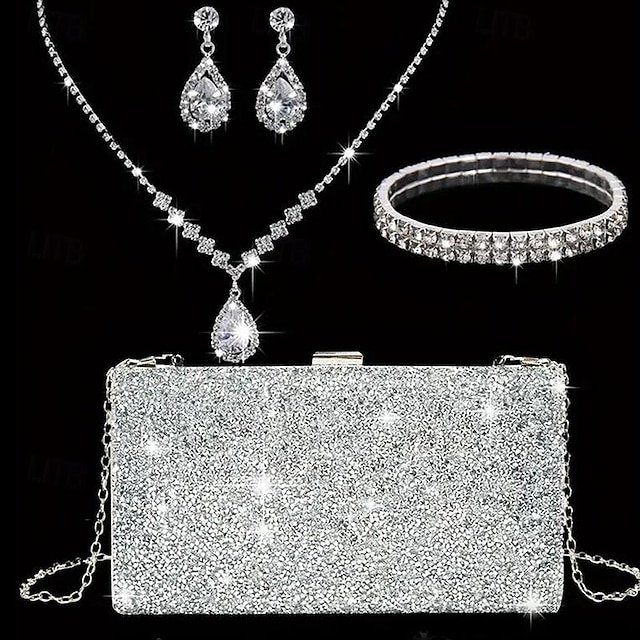 Women’s Rhinestone Jewelry and Clutch Set for Weddings and