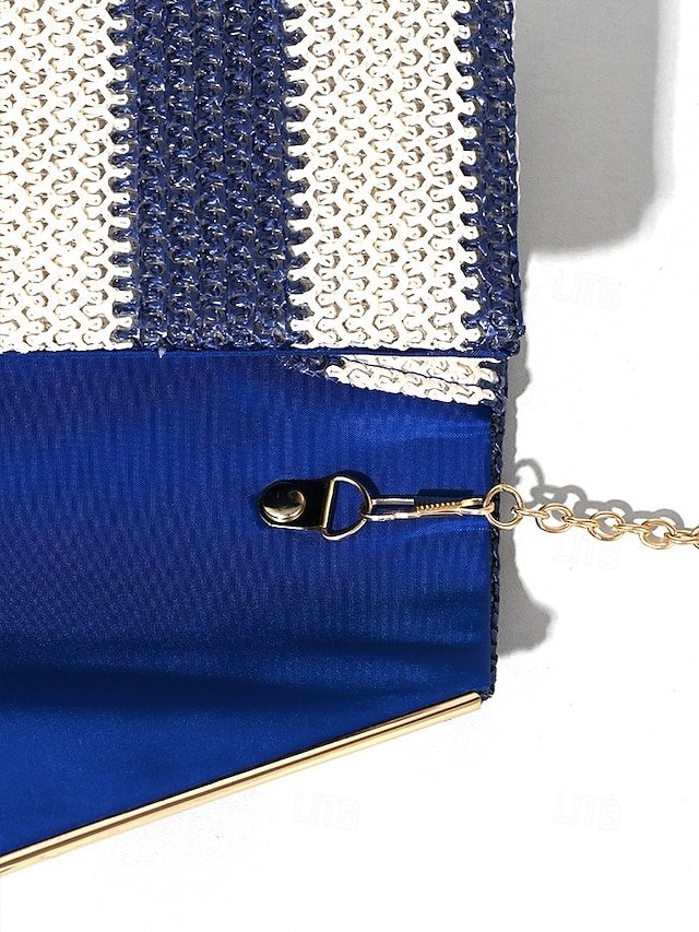 Gender: Women’s, Type: Crossbody Bag, Shoulder Bags, Material: Straw, PU Leather, Embellishment: Chain, Pattern: Striped, Detachable strap: Detachable, Adjustable strap: Non-Adjustable, Occasion: Beach, Casual Daily, Width (cm): 5, Height (cm): 12, Length (cm): 23, Function: Multi Carry, Category: Clutch,