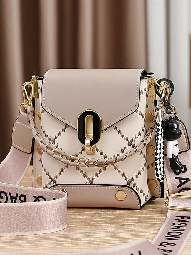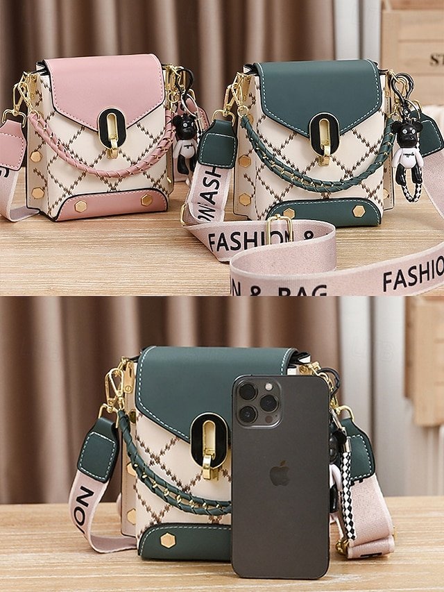 Gender: Women’s, Type: Mobile Phone Bag, Crossbody Bag, Shoulder Bags, Material: PU Leather, Embellishment: Chain, Pendant, Wide shoulder straps, Pattern: Quilted, Patchwork, Detachable strap: Detachable, Adjustable strap: Adjustable, Occasion: Office, Casual Daily, Width (cm): 17, Height (cm): 10, Length (cm): 17, Function: Large Capacity, Multi Carry, Category: Crossbody Bag,